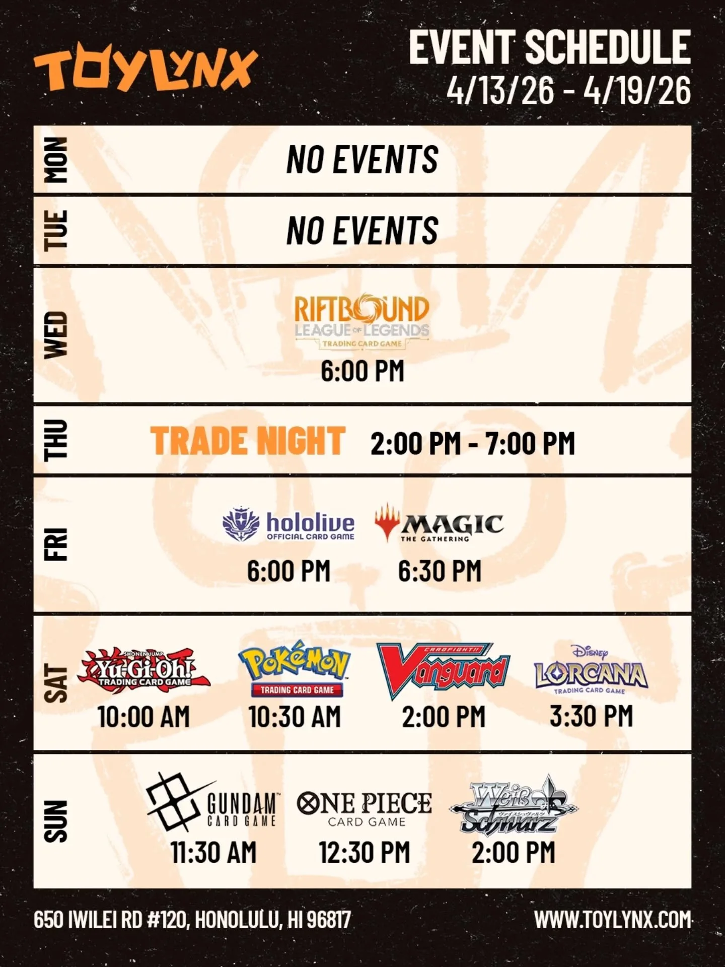 Join us weekly for exciting card game events! Whether you're into Magic, Pokémon, or Yu-Gi-Oh!, we have tournaments, casual play, and special gatherings for every type of player.